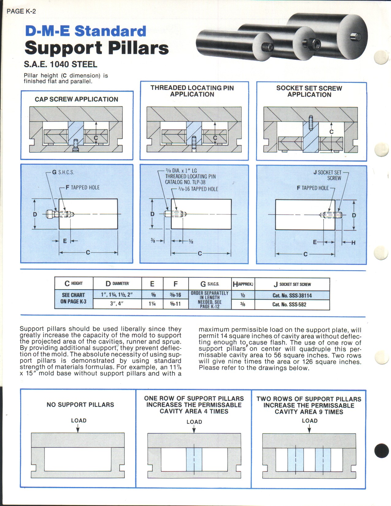 Description: Pilares de soporte para moldes de la fabrica DME